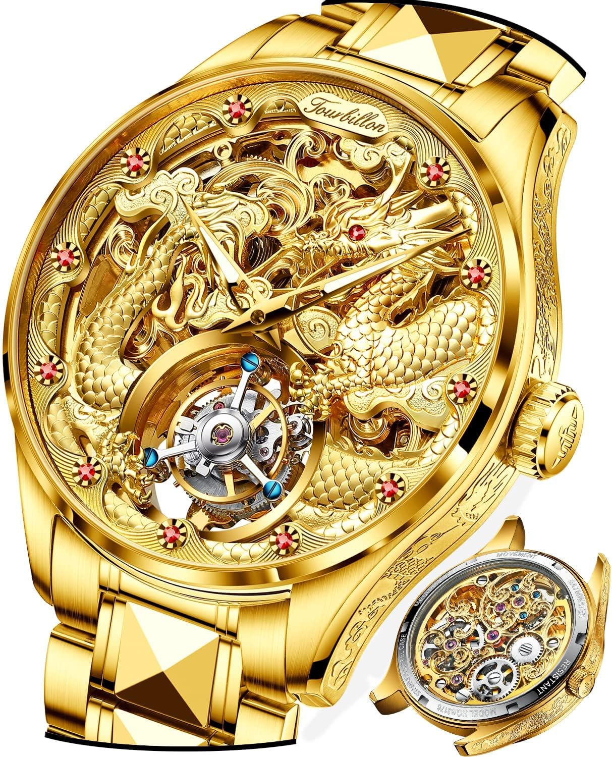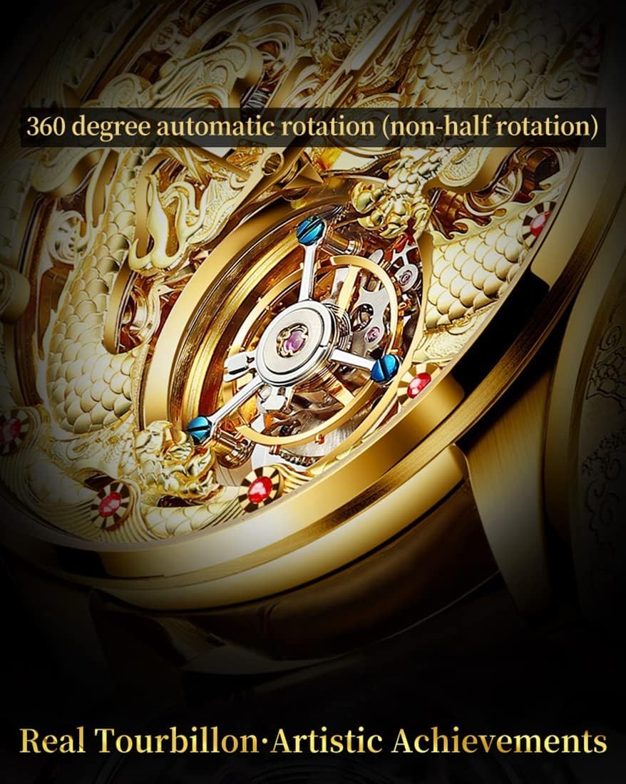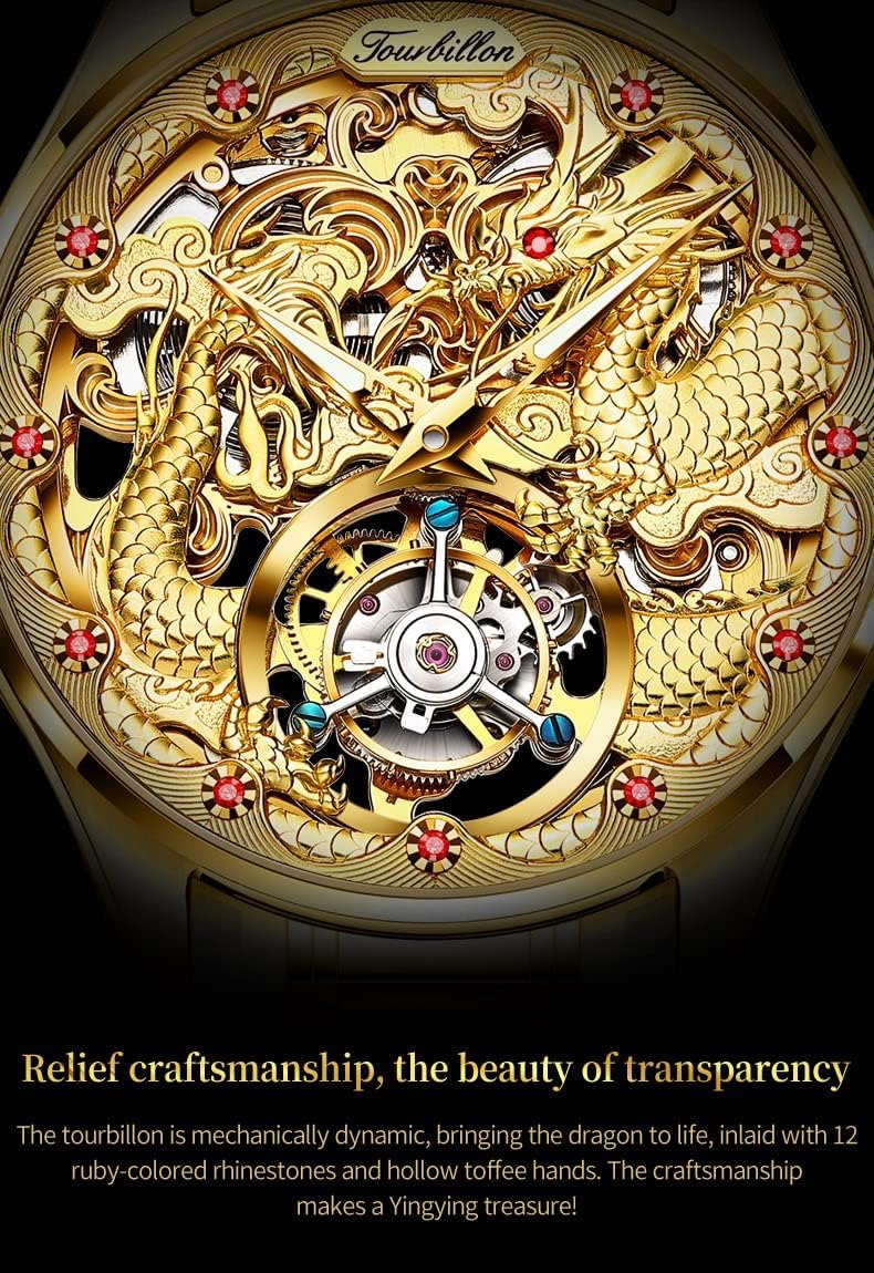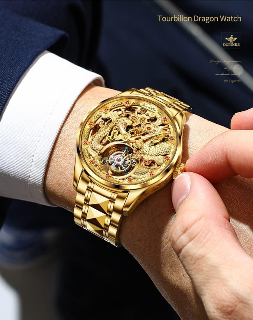 OUPINKE Men’s Skeleton Mechanical Watches Luxury Dress Automatic Self Winding Sapphire Crystal Waterproof Tungsten Steel Band Wrist Watches